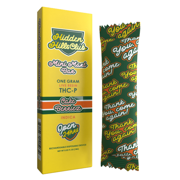 Cake Berriez is an indica disposable strain featured in the Mini Mart collection and manufactured under the quality standards associated with Hidden Hills disposables. It is infused with THC-P, a highly potent cannabinoid known for its enhanced euphoric and relaxing effects compared to traditional Delta-9 THC.